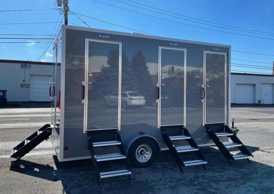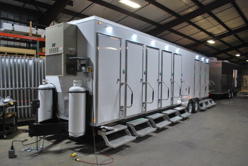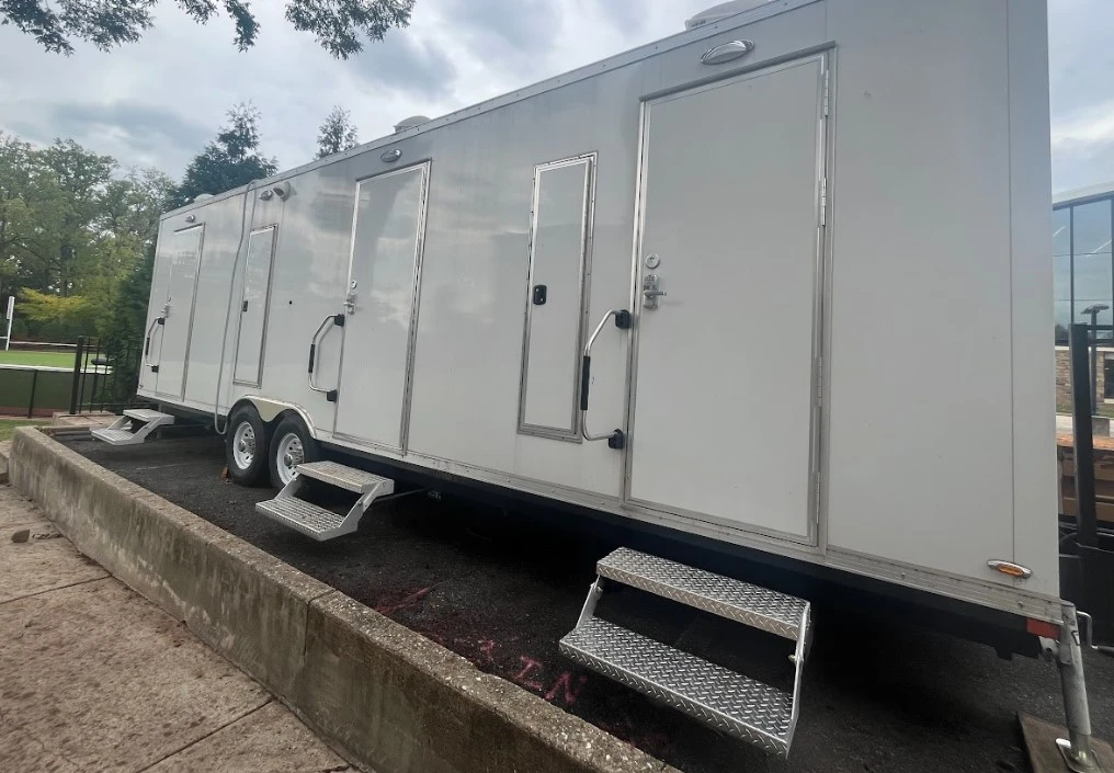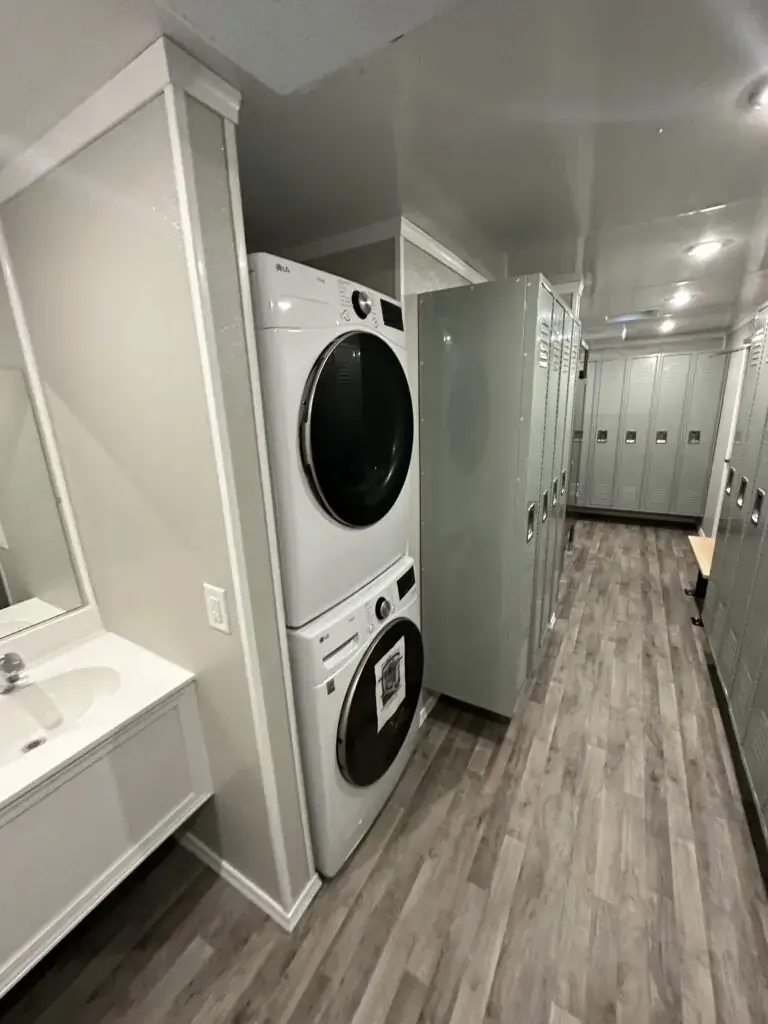 Combo trailers combine shower, restroom, and laundry in one unit.